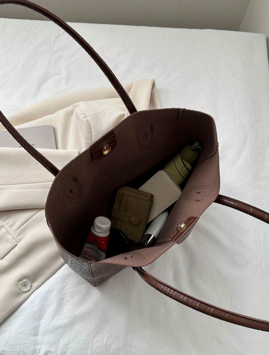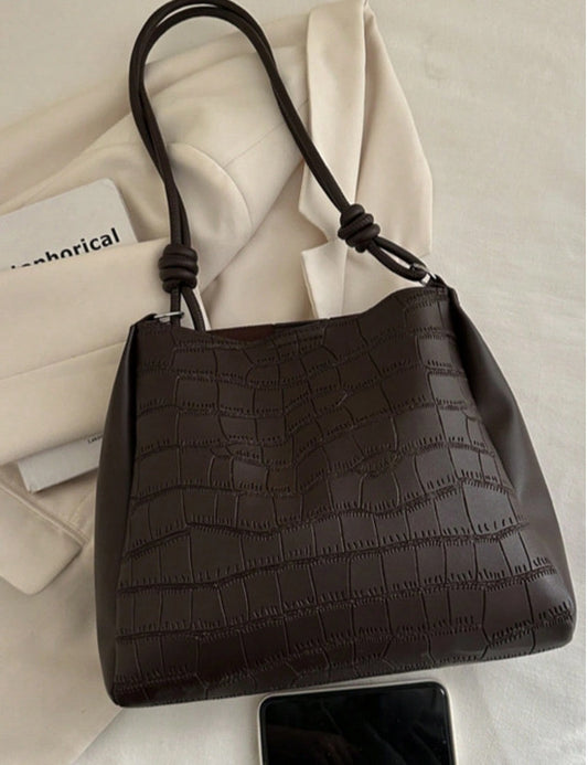 BOLSO GRANDE COLOR MARRON, IMITACION PIEL DE COCODRILO