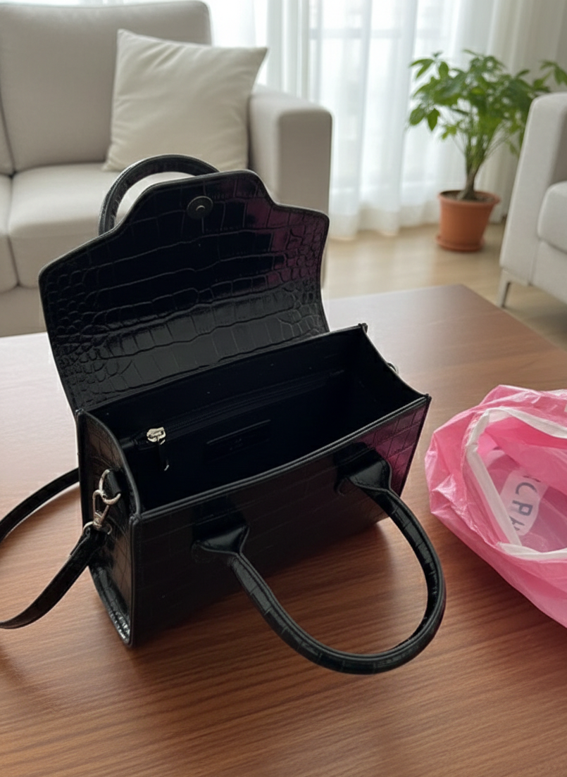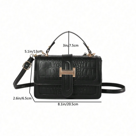 BOLSO NEGRO HEBILLA, IMITACION PIEL DE COCODRILO