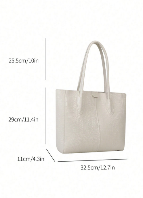 BOLSO BLANCO TAMAÑO GRANDE, IMITACION PIEL DE COCODRILO