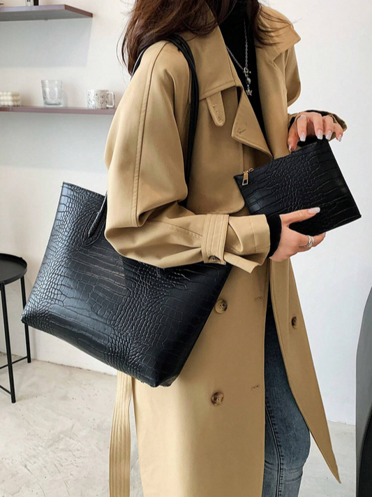 BOLSO NEGRO GRANDE,I IMITACION PIEL COCODRILO
