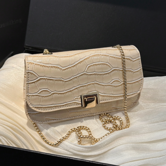 BOLSO BEIGE EN RELIEVE CON CADENA DORADA